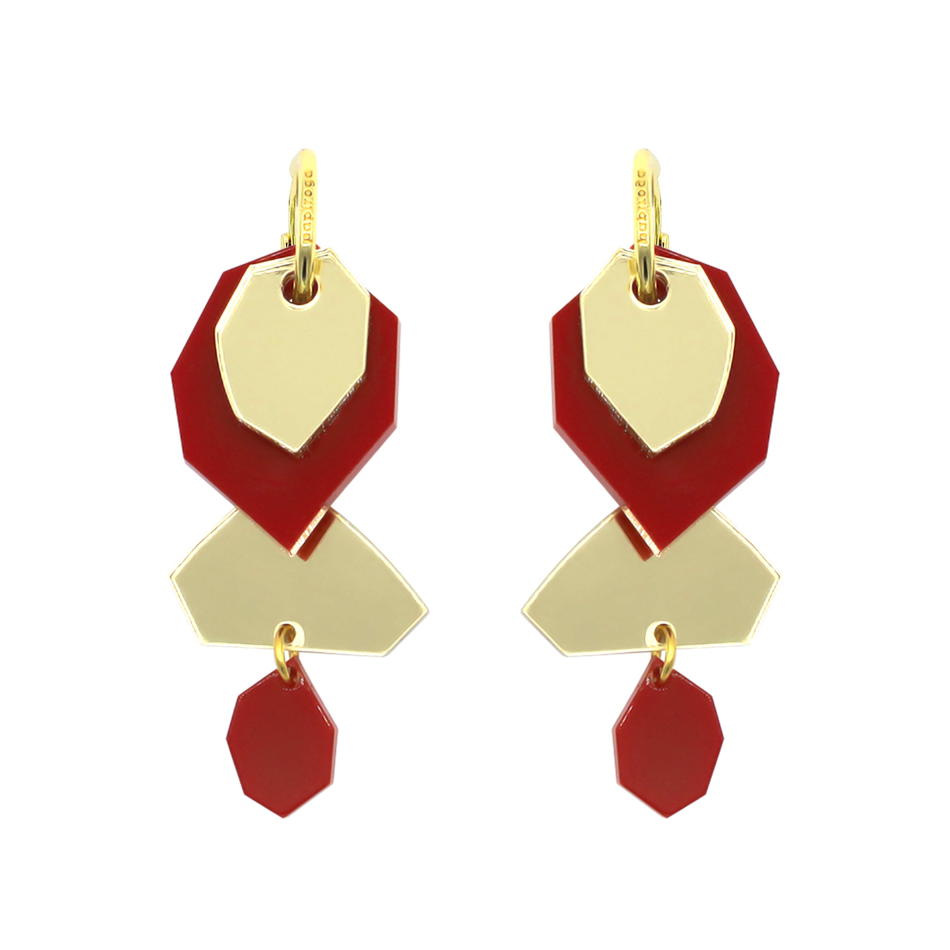 Jedinečnost náušnic Deshielo Rojo spočívá v jejich moderním designu, asymetrických tvarech a barevném kontrastu sexy červené a zlaté.